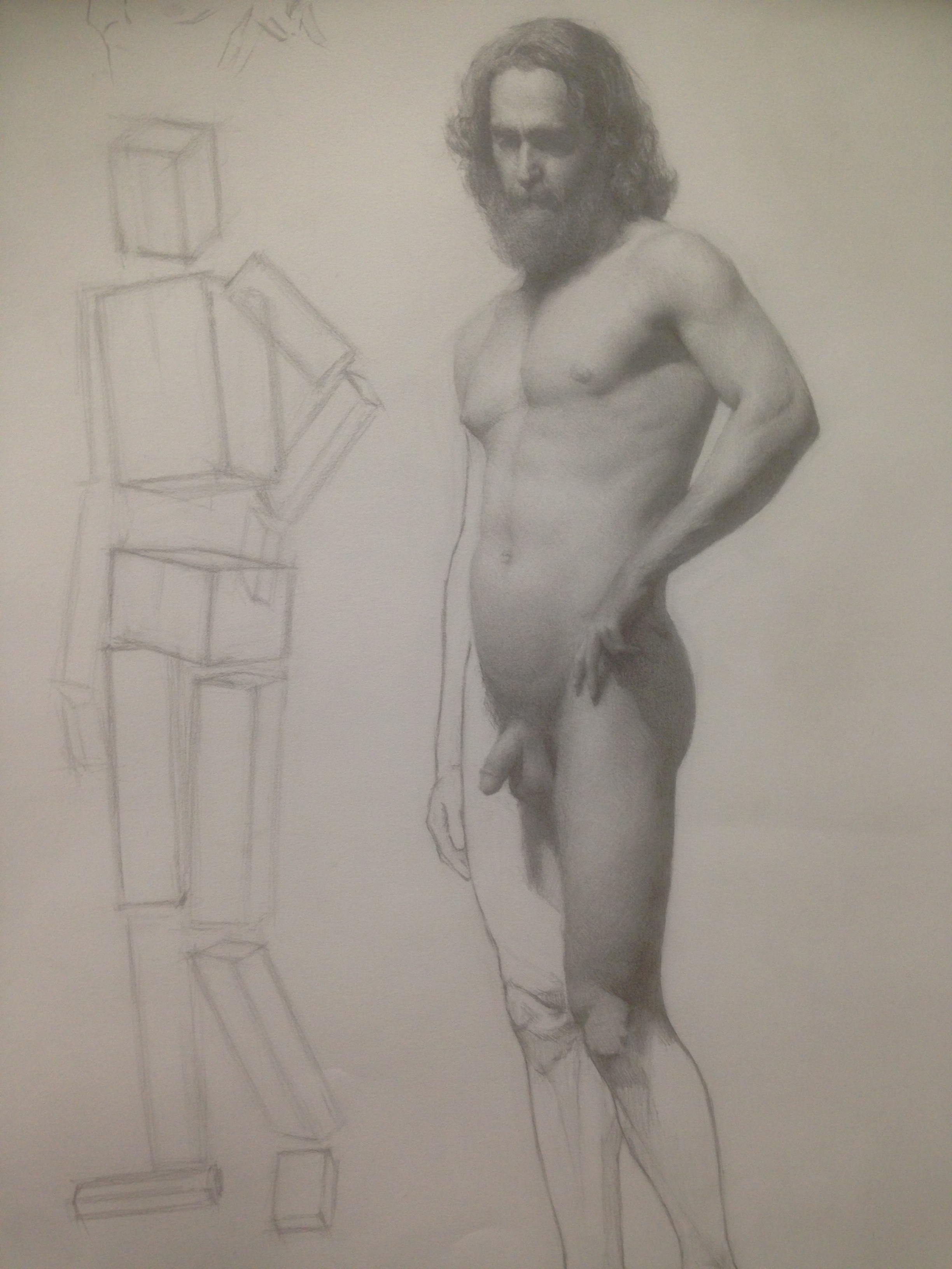 I was feeling super nervous about my drawing skills and also being the lone ambassador from my atelier because I had been art directing since the studio year ended and not drawing. I had sketched a bunch but I hadn’t Drawn or Drafted. I wasn’t ready to represent the Aristides atelier. Other things too were worrisome, like this class was all in graphite and I had spent the year in charcoal. Drawing is drawing, but felicity with materials makes a huge difference. I can’t boast any finished graphite drawings to my name. The point is, I wanted to have a successful class where I was drawing my best and being pushed from my best into growth. That’s ideal, right? But I hadn’t set myself up for that.