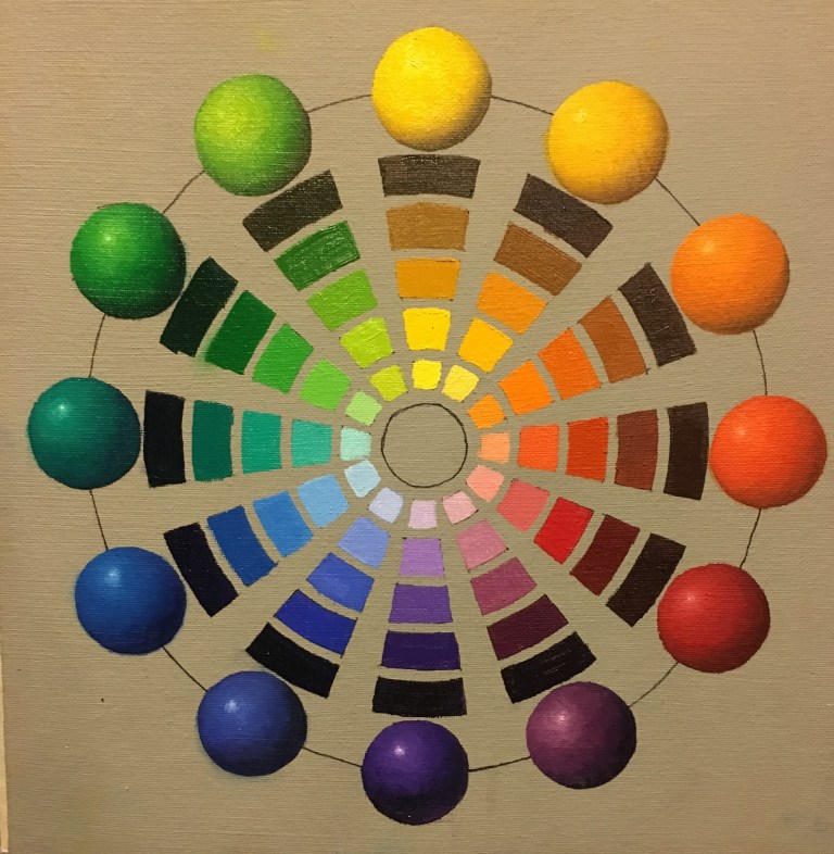If only color was that simple! Form painting in color is a whole different ball of wax. The good news is that it still very much relies on value. If you remember my color wheel of spheres you’ll remember that the goal was to turn form on 12 different colored spheres using value while staying true to each color. Because the illusion of form relies so much on value we were able to make the spheres look round by tuning colors from dark to light. But look back up to Juliette’s painting of the pear and to the apricots at the top of the page. No object is truly made of one color. This is because objects reflect colors from other objects around them and different colors and surfaces respond to light differently. So how do we learn to take a red sphere and make it look like a luminous apple?